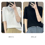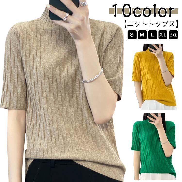 タートルネック 秋 五分袖 半袖 ニットトップス ハイネック セーター レディース シンプル 無地 夏 半袖 半袖ニット ハイネックニット 春 インナー きれいめ 上品 オフィスカジュアル 大人#tomin569297 | オキナ商店