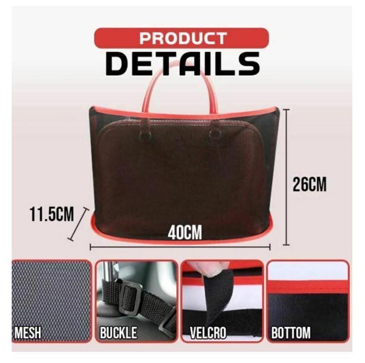 ベルトで簡単に設置出来るカバンや小物がサッと置ける車内収納便利グッズ。