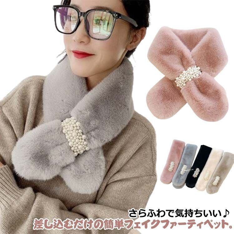 もこもこ 送料無料 女性用 ネックウォーマー ティペット マフラー ファー スヌード ショートマフラー フェイクファー 送料無料 ふんわり ボリューム感 小顔効果 差し込み 使い簡単 シンプル ビジュ#shark566742 | オキナ商店