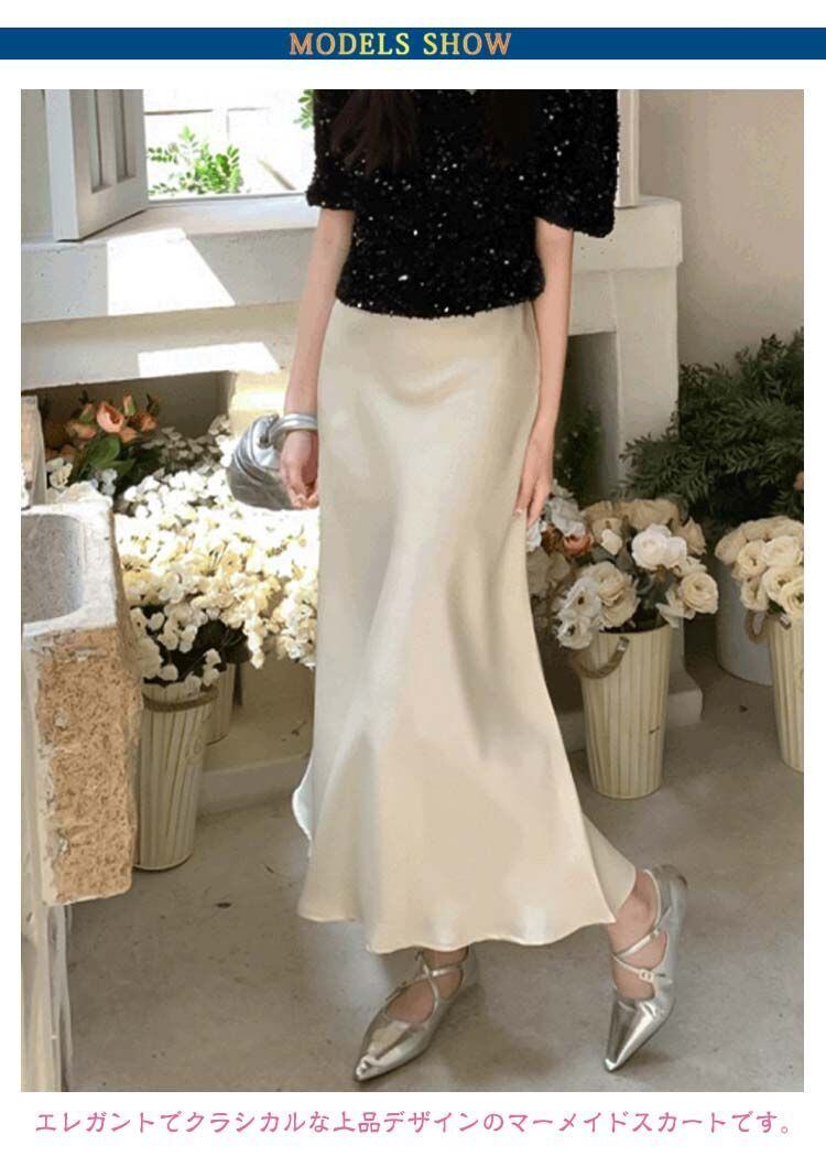 ロング とろみ 結婚式 高級感 マキシ丈 レディース サテン 光沢感 マーメイドスカート 無地 防シワ ボトムス 洗える ロングスカート きれいめ マーメイドスカート フレア お呼ばれ ロング丈 オフ#nagin579031 | オキナ商店