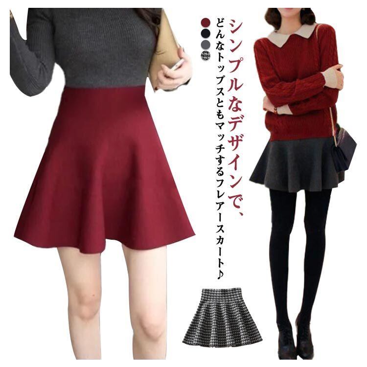 レディース ミニスカート ハイウエスト 秋冬 ボトムス フレア 無地 チェック柄 千鳥格子 ショート丈 スカート フレアスカート フレア キュロットスカート サーキュラースカート ストレッチ 美脚 ガ#lucky559833 | オキナ商店