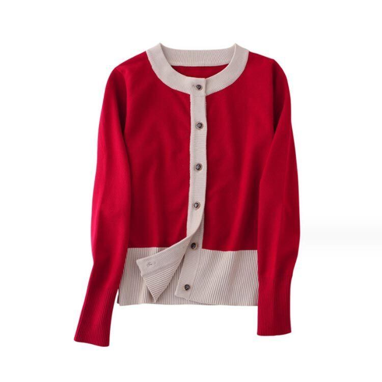 クルーネック ニット レディース バイカラー 前開き ボタン ニット 配色 長袖 セーター 羽織り トップス 丸首 カジュアル オフィス 大人 通勤 ママ おしゃれ#healt580782 | オキナ商店