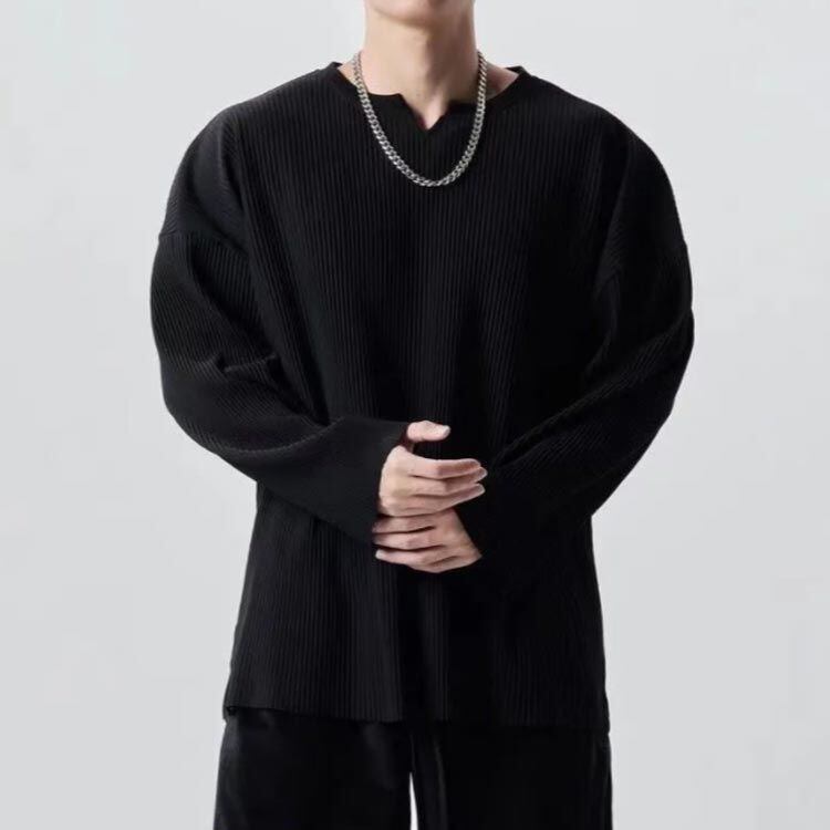 メンズ ゆったり 長袖 無地 カットソー カットソー Tシャツ シンプル vネック ニットソー風 ロンT おしゃれ ストレッチ ダンス フィットネス スポーツウェア ストリート かっこいい#healt580755 | オキナ商店