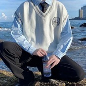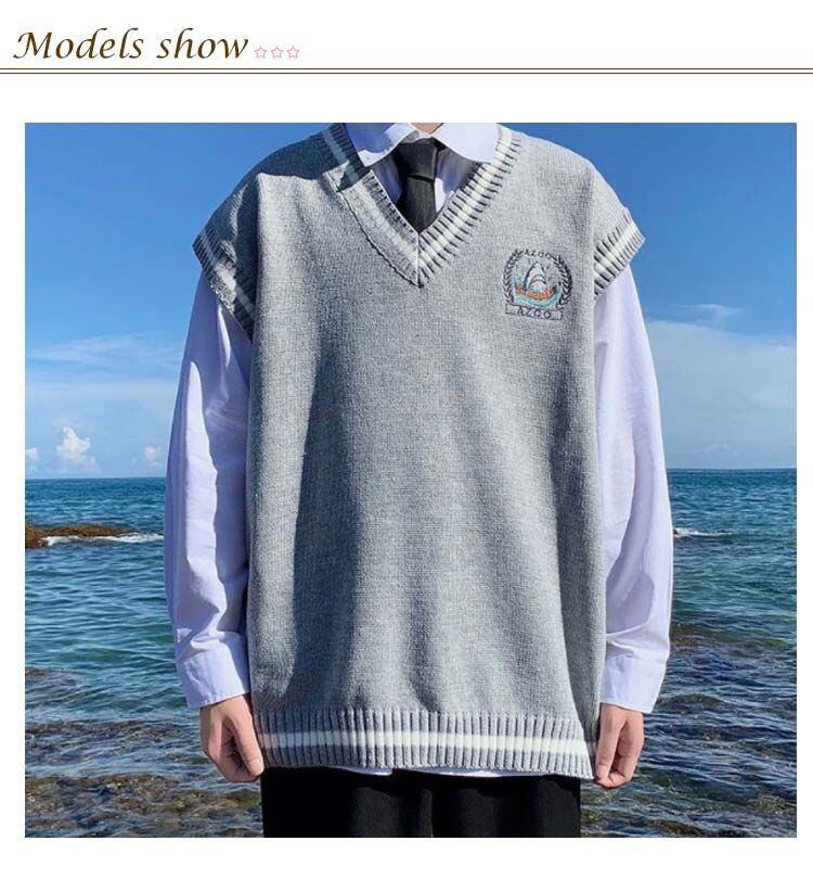 Vネック ニットベスト 学院風 スクールセーター チョッキ 配色ライン ニットベスト 男子 学生服 制服 中学生 高校生 スクールベスト メンズ 通学 ゆったり カジュアル 春秋冬 コスプレ ストリー#gurug577866 | オキナ商店