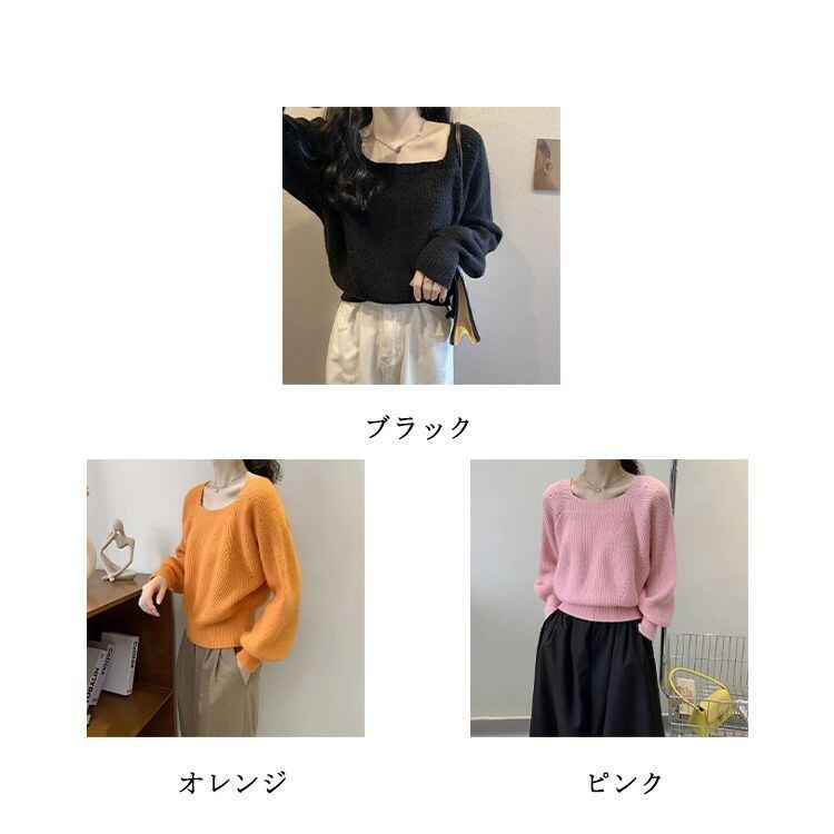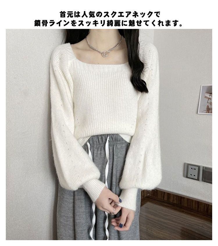 カジュアル ニットセーター スクエアネック お洒落 バルーンスリーブ 長袖 きれいめ トップス トップス ニットトップス プルオーバー 春秋冬 ショート丈 スタイルアップ フェミニン 無地#gurug577862 | オキナ商店
