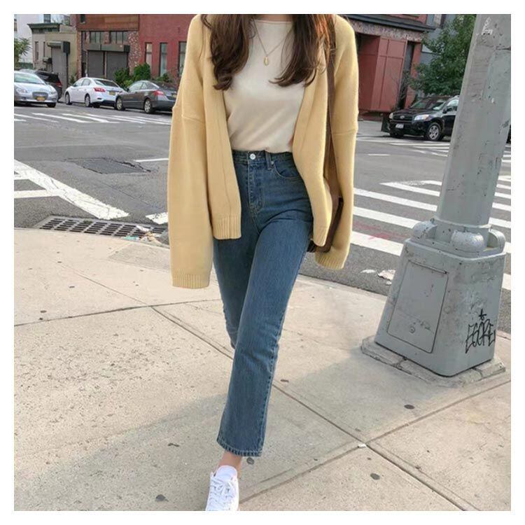 ざっくりと着られる厚手のニットカーディガンなので、防寒対策もばっちり。