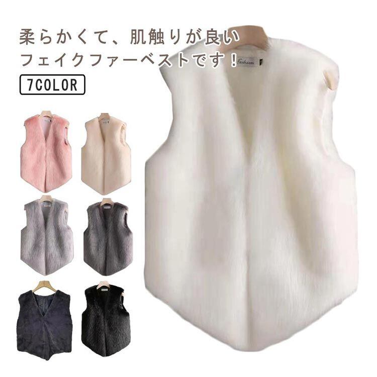 ジレ ファーベスト パーティー ふわふわ ベスト ファーベスト フォーマル フェイクファー フォーマル モコモコ ショート丈 チョッキ 秋冬 トップス アウター 無地 ファーベスト 暖かい おしゃれ#conne565130 | オキナ商店