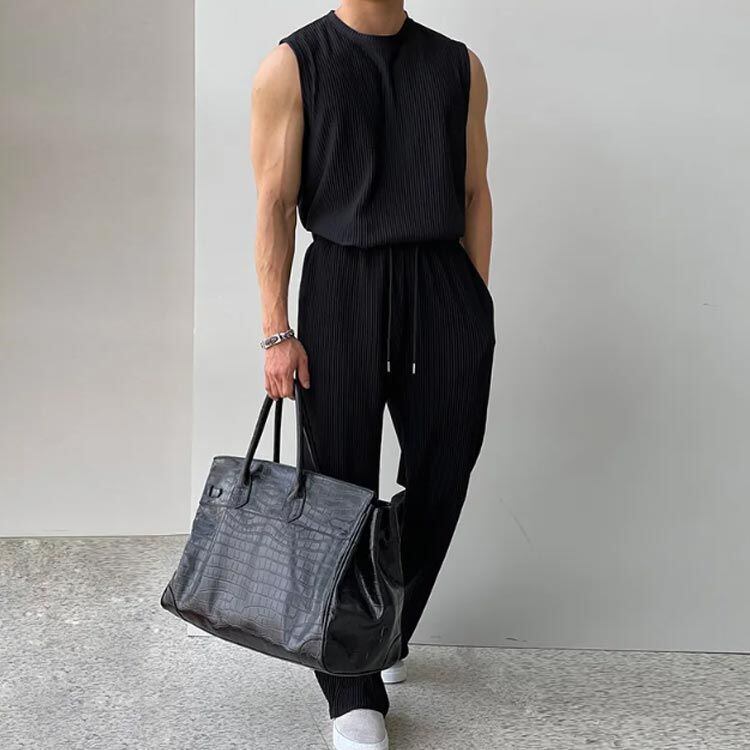 ノースリーブ タンクトップ セットアップ 2点セット ジム 筋トレ 長ズボン 上下セット Tシャツ 通気性 スポーツウェア ゆったり 伸縮性 2点セット 涼しい フィットネス 運動 トレーニングウェア#conne565103 | オキナ商店