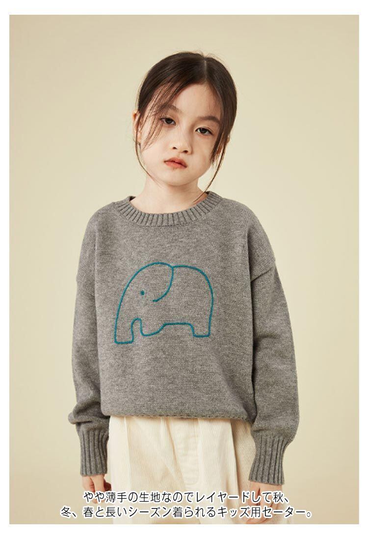象柄 女の子 シンプル おしゃれ 子供服 クルーネック 男の子 プルオーバー ニットセーター 無地 キッズ ジュニア ニットセーター トップス 可愛い お誕生日 プレゼント 通園 通学 秋#conne565099 | オキナ商店