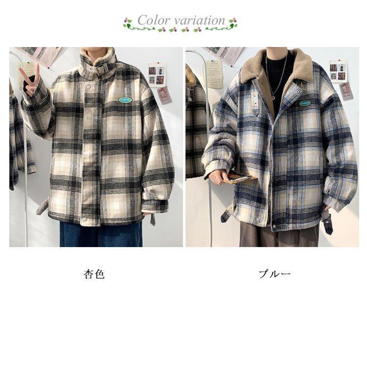 お洒落 メンズ ボアブルゾン ボアコート 送料無料 アウター 韓国風 ボアパーカー ボアブルゾン チェック柄 カジュアル 大人 長袖 L 裏ボアジャケット かっこいい ゆったり ジャケット 厚手 防#cjfj139585 | オキナ商店