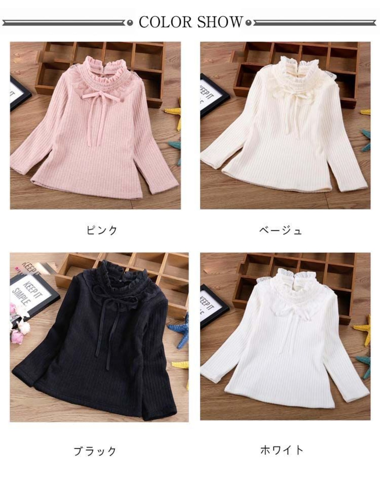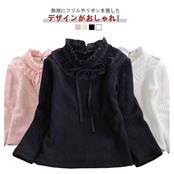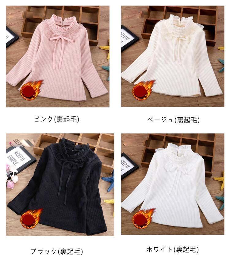 レース リブトップス キッズ 女の子 長袖 カットソー リボン 綿 立ち襟 Tシャツ スタンドカラー 裏起毛タイプあり 秋 フリルネック 子ども服 子供服 コットン かわいい 小学生 カジュアル 春#cjfj139568 | オキナ商店