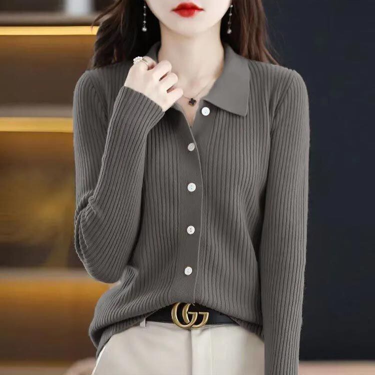 羽織 ニットカーディガン ニットソー レディース リブニットカーディガン セーター 柔らか 襟付き カーディガン リブ トップス 襟付きニットカーディガン リブニットカーディガン セーター トップス #alice574466 | オキナ商店