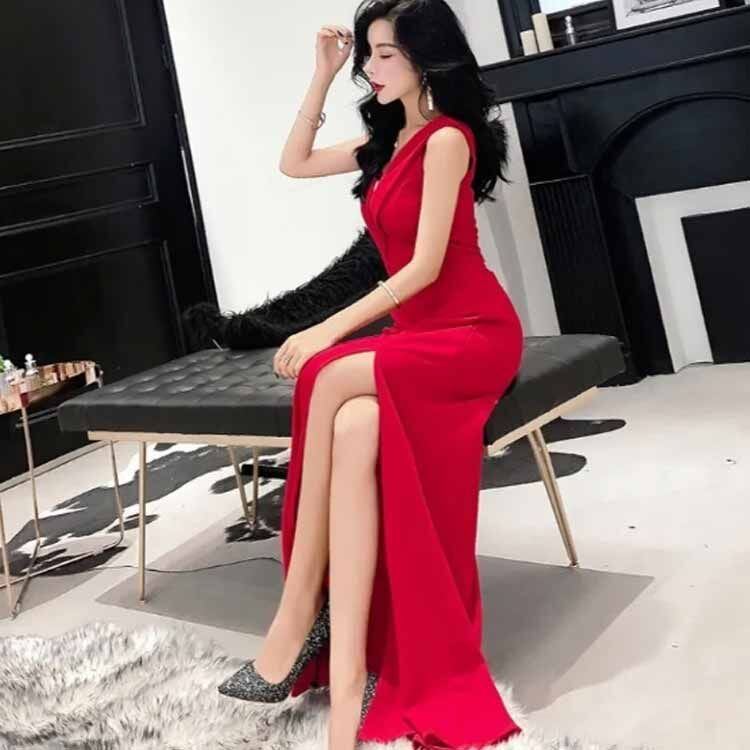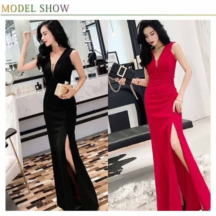 胸元深めVカット キャバ 演奏会 バースデー ロングドレス ワンピース 美シルエット タイト マーメイド スカート フリル ドレス ハイスリット ナイトドレス キャバ キャバドレス ドレス ロングドレ#alice574460 | オキナ商店