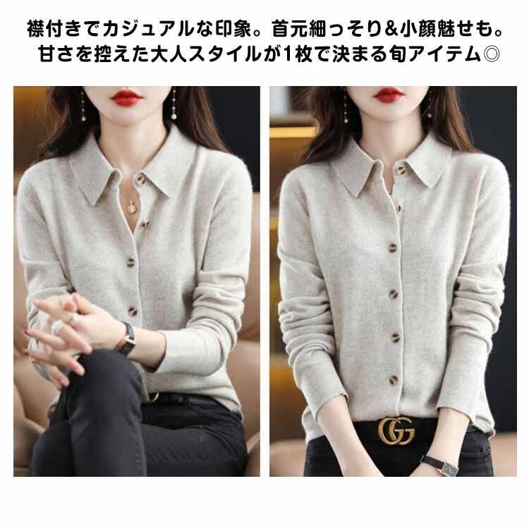 襟付き レディース 秋 ニットセーター ニットソー 長袖 可愛い 無地 ニット 前開き トップス 襟付き 柔らか 着痩せ 羽織り あったか 春 ニットソー ニット カットソー レッド パープル グリー#alice574459 | オキナ商店