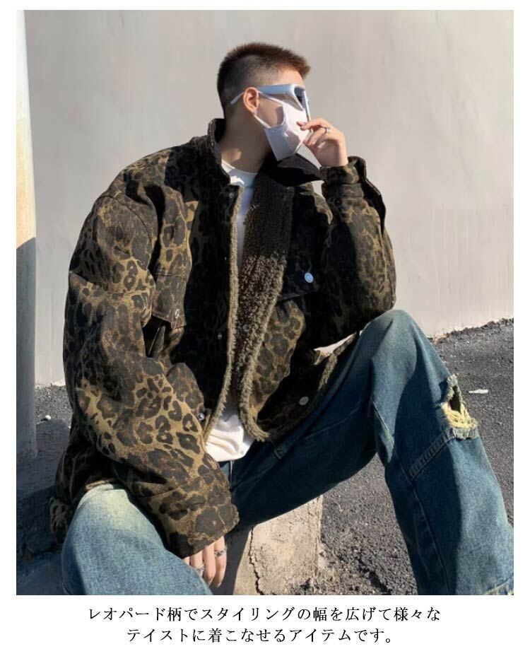 ボアブルゾン リバーシブル ボア アメカジ XL 秋冬 ボアジャケット 暖かい メンズ レオパード柄 アウター レトロ おしゃれ ストリート系 S M L ボアブルゾン 2XL#alice574453 | オキナ商店
