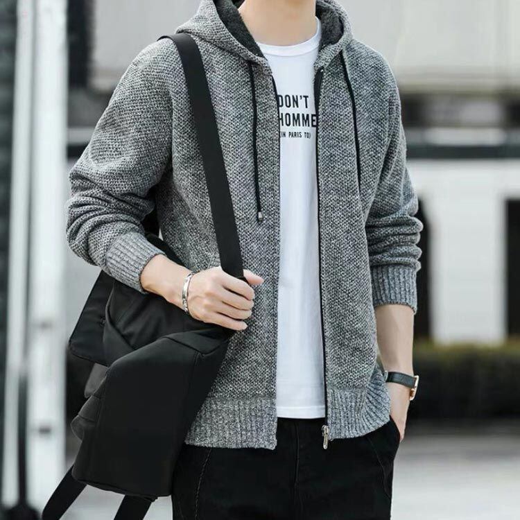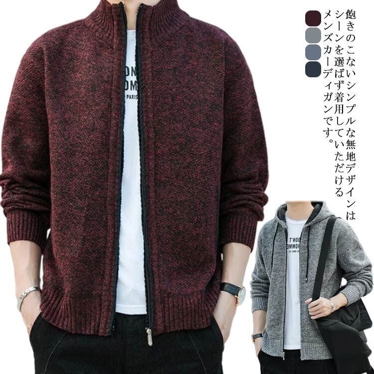 ニットジャケット ニットカーディガン メンズ ジップアップジャケット フード付き 無地 ニット カーディガン ファスナー アウター パーカー カジュアル 秋 冬 大きいサイズ 送料無料 m l xl #mjx1710 | オキナ商店