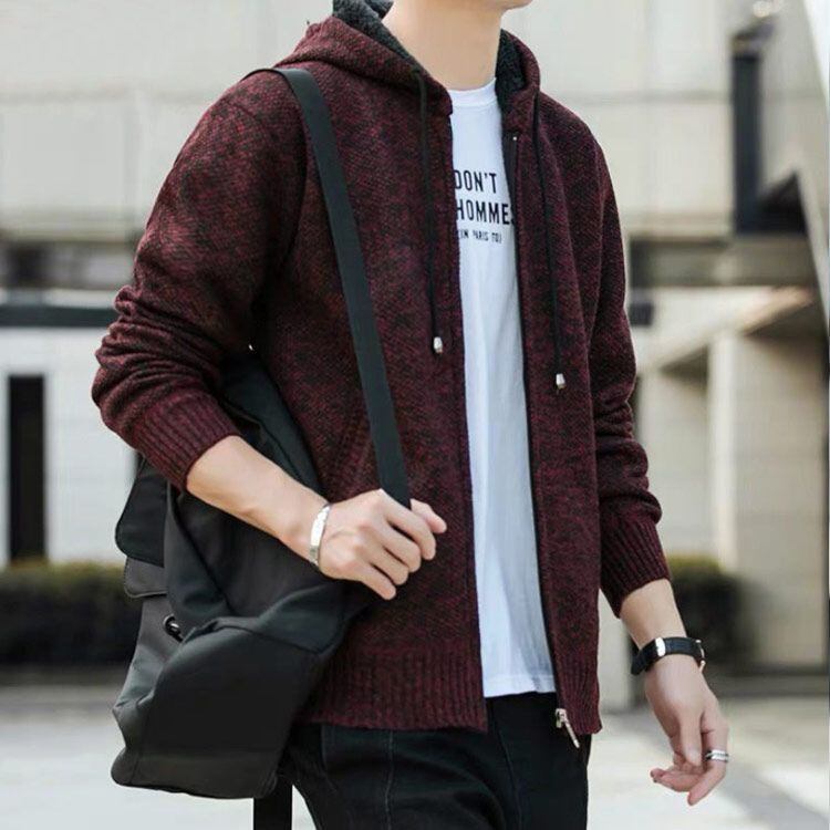 程よい厚さと品のある高級感の素材で作られたメンズニットセーターです。手触りが柔らかくて裏起毛で、秋冬の季節の防寒保温性がいい厚手カーディガンです。
