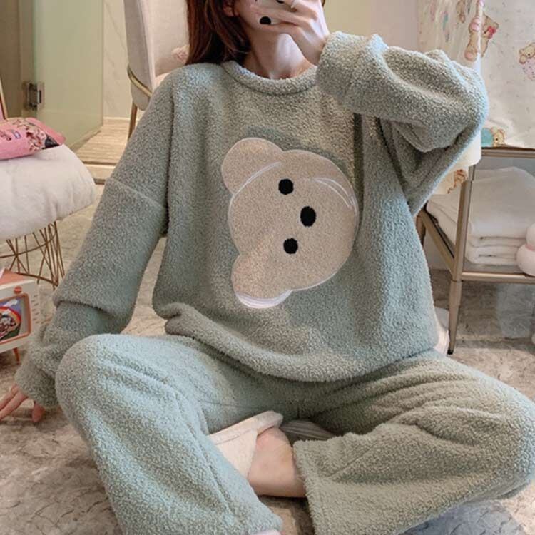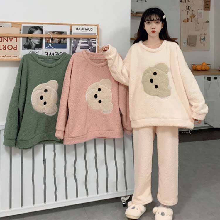 パジャマ モコモコ ルームウェア くま柄 あたたかい かわいい 長袖 レディース 着心地 長ズボン 春 秋 冬 大きいサイズ 上下セット 防寒 セット 寝巻き ナイトウェア 部屋着#mjx1273 | オキナ商店