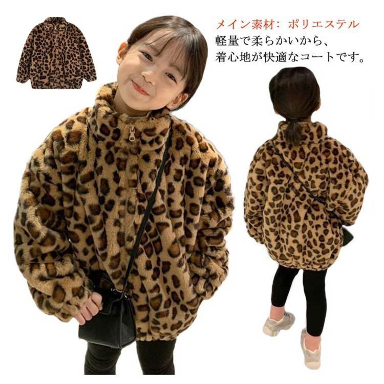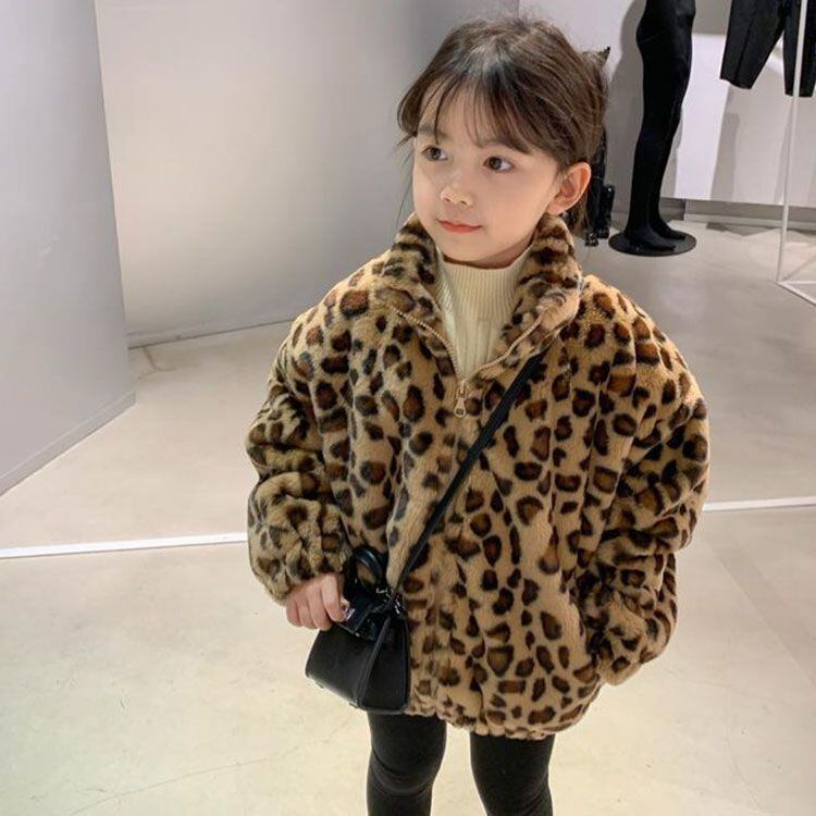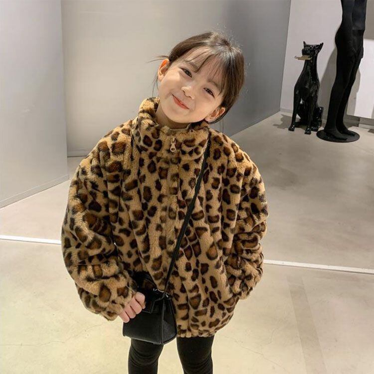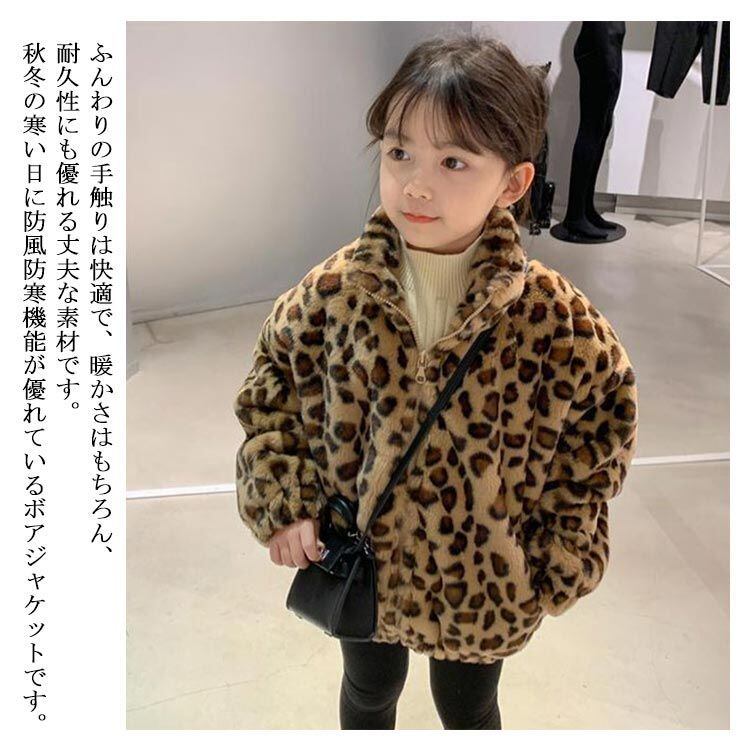 ボア ジャケット ボアコート キッズ ヒョウ柄 子供服 ボアブルゾン 立ち襟 もこもこ ファー ボアフリース 赤ちゃん ベビー 韓国 アウター こども 女の子 軽量 防寒 暖かい 90 100 110#mjx1225 | オキナ商店