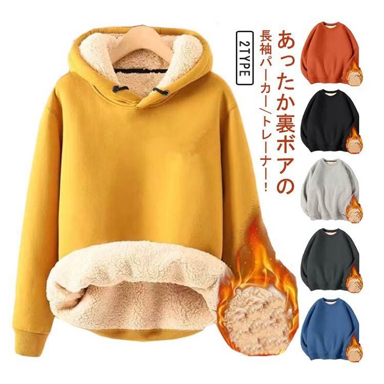 袖もボア!あったか裏ボアの長袖パーカー/トレーナー!