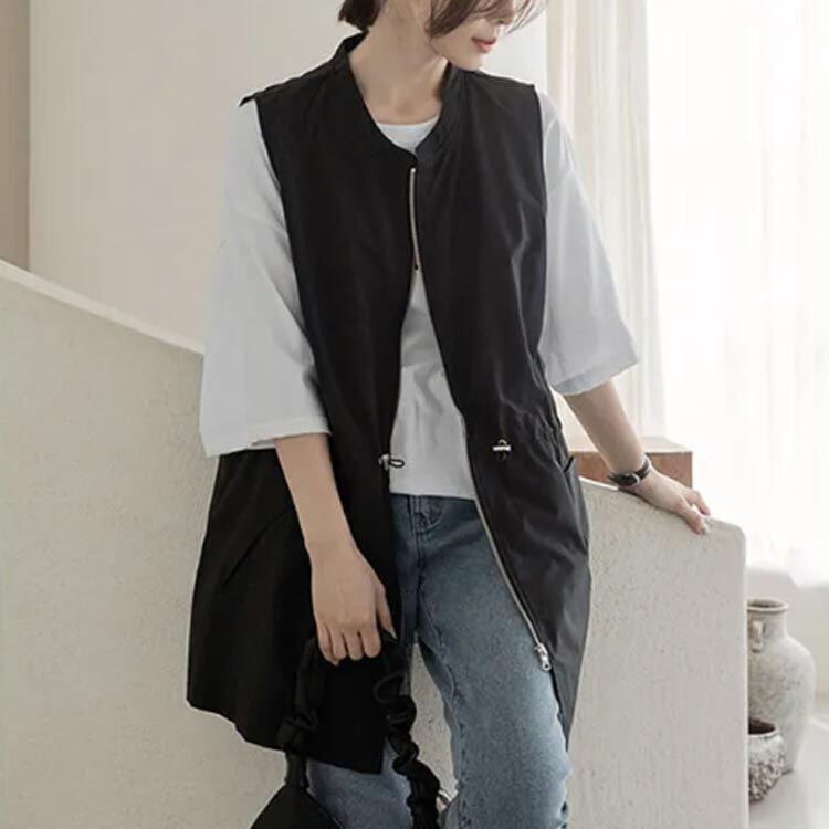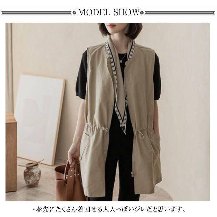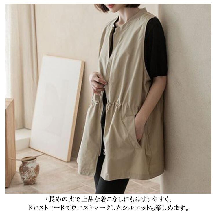 ジップアップ ロングベスト レディース ロング ジレ スプリングコート 春コート ベスト ジレ 袖なし ノースリーブ 裏地あり ノーカラー ジップアップ 前開き 羽織 アウター ポケット付き カジュア#pdd6556 | オキナ商店