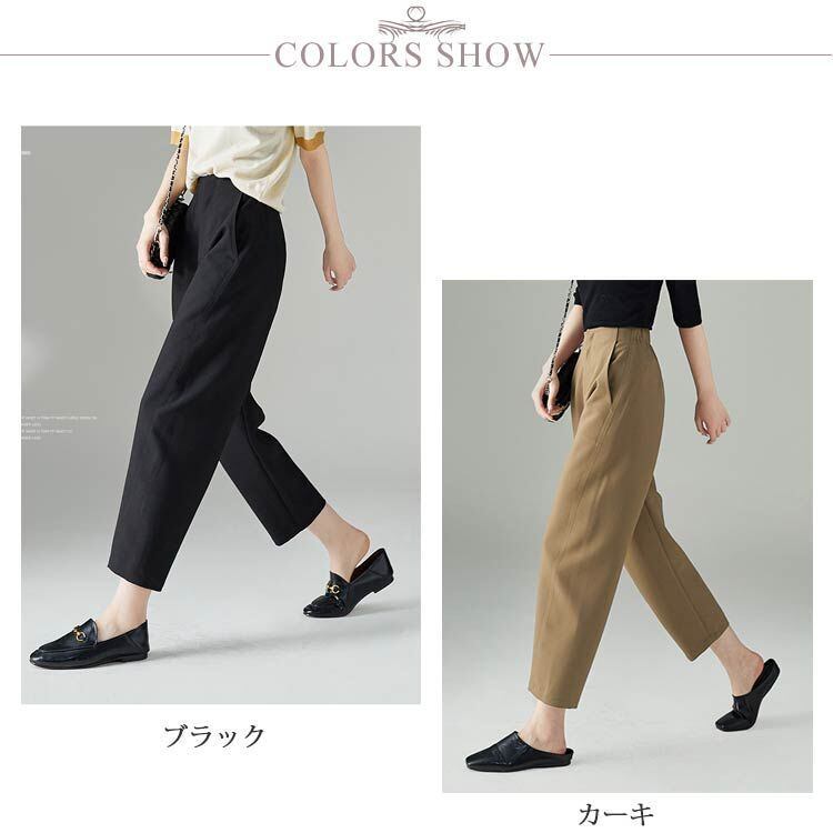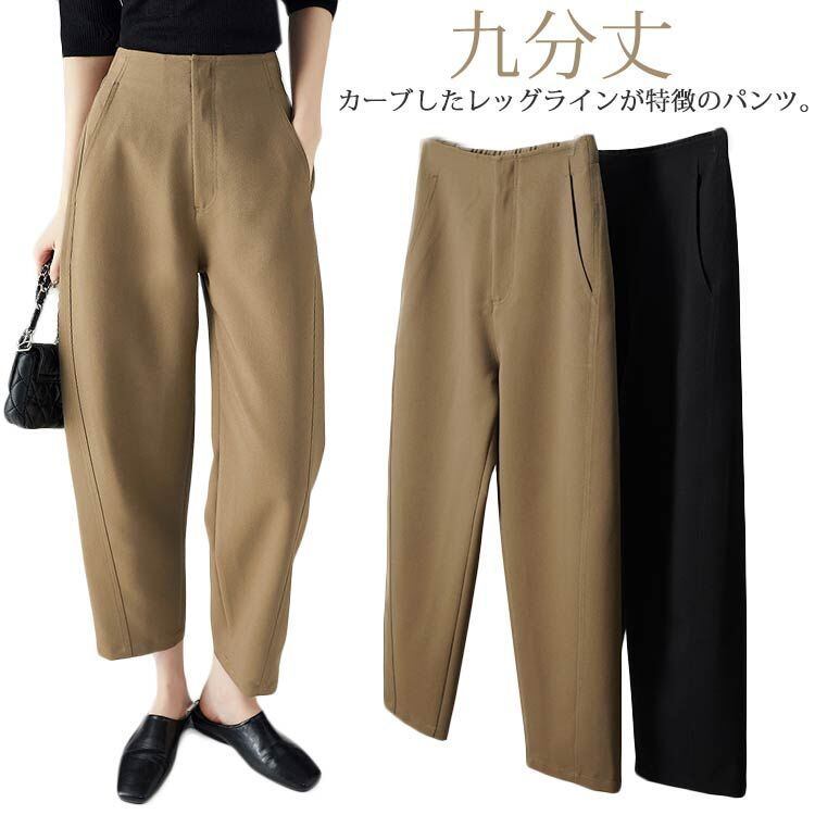 パンツ カーブパンツ テーパードパンツ きれいめ レディース スラックス ツイル ウェストゴム クロップドパンツ 九分丈 ポケット付き 楽ちん 体型カバー 立体 春 秋 オールシーズン 通勤 オフィス#pdd6535 | オキナ商店