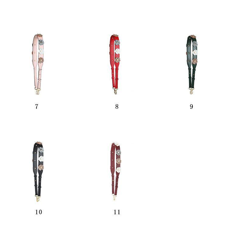 フラワーモチーフがたくさんついたバッグ用ショルダーストラップ。
