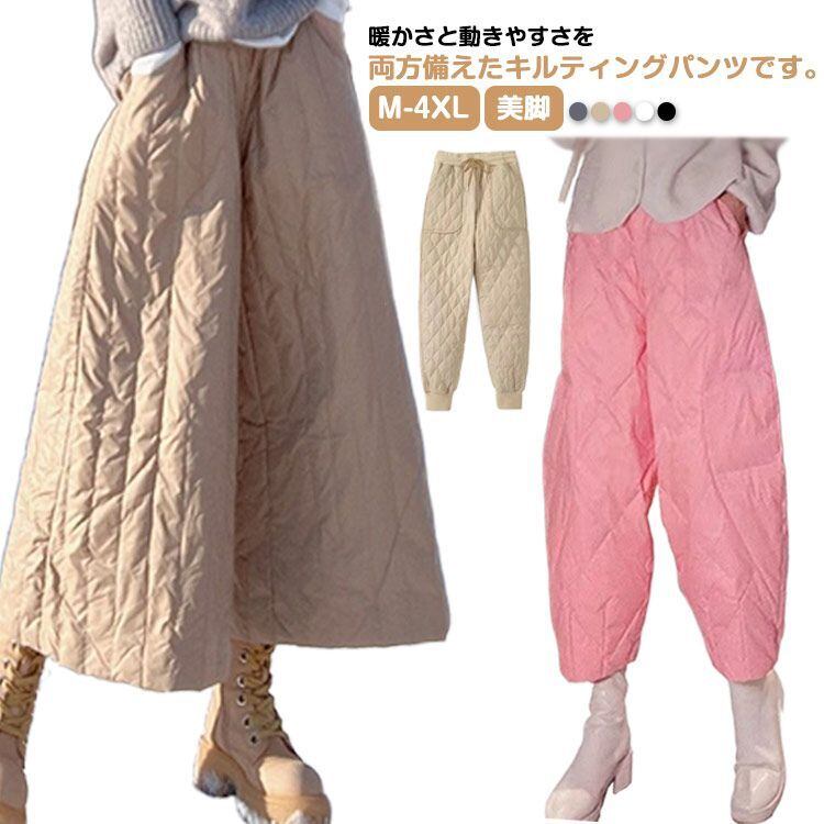ロングパンツ レディース 中綿パンツ ダウン風パンツ 中綿 あったか ボトムス 防寒ズボン ワイドパンツ 暖かい パンツ 冬 キルティングパンツ 美脚 防寒 保温性 ぽかぽか パンツ ウェストゴム ガ#lucky569437 | オキナ商店