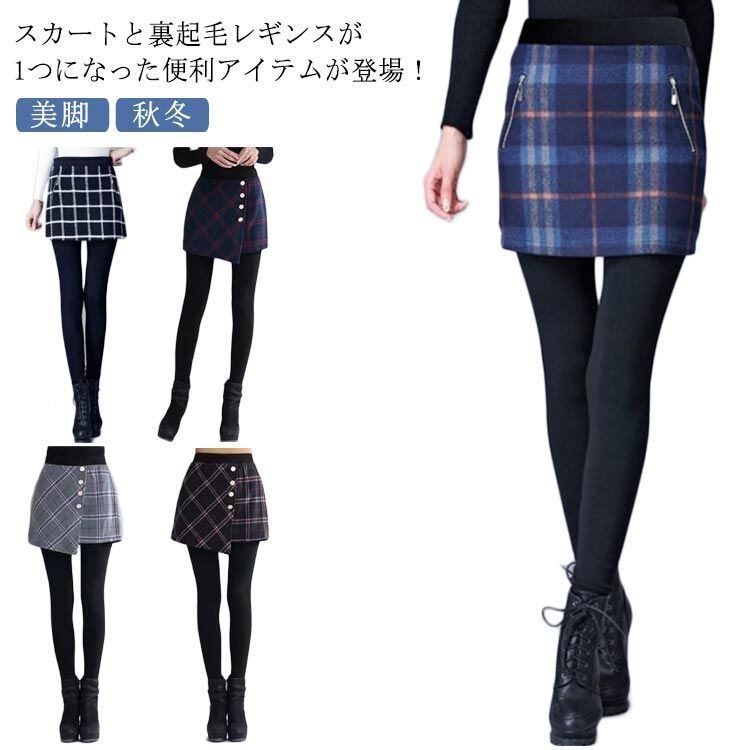 裏起毛 裏起毛レギンス ミニスカート スカート付き レディース レギンス ウエストゴム スカート付きレギンス 秋冬 タイトスカート スカート付き レギンスパンツ レギパン ウエストゴム レイヤード 韓#lucky569433 | オキナ商店