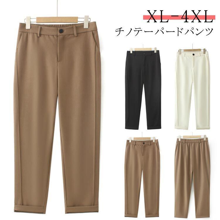 テーパードパンツ 長ズボン ウェストゴム 綿 春 レディース ロングパンツ ボトムス 大きいサイズ コットン チノパンツ ほどよくゆるっとシルエット 通勤 楽ちん おしゃれ きれいめ チノパンツ 秋#kitsu574745 | オキナ商店