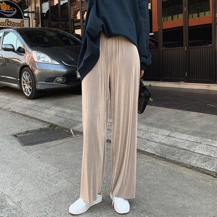 ・細プリーツ加工が上品で大人な印象に仕上がるワイドパンツ。