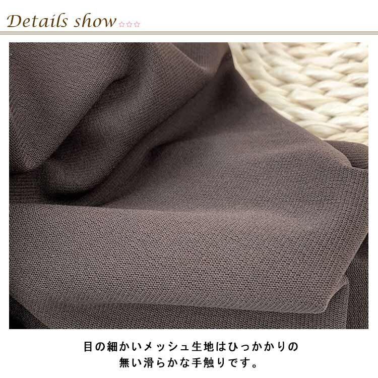 目の細かいメッシュ生地はひっかかりの無い滑らかな手触りです。