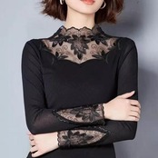 韓国 カットソー インナー 長袖 カットソー レイヤード トップス モックネック 長袖カットソー レース ロンT ボトルネック レース切り替え 透けない インナートップス 長袖tシャツ コーデ 重ね着#gurug577163 | オキナ商店