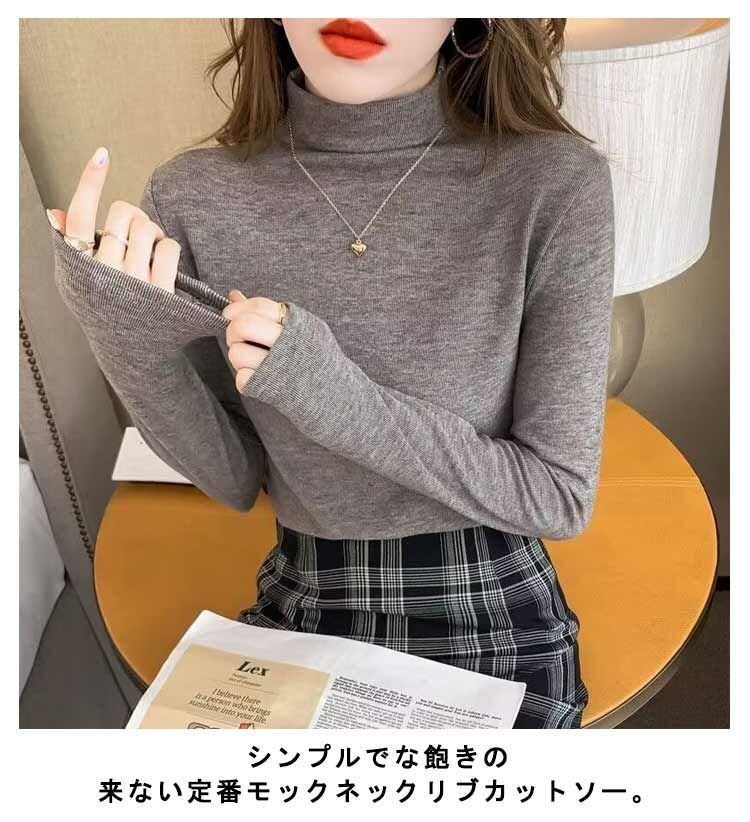 インナー ロンT トップス レディース 春 リブ ゆったり カットソー 秋冬 tシャツ モックネック ロングスリーブ リブカットソー 長袖 リブ ストレッチ 抜け感 きれいめ 無地 リブ 黒 モカ グ#gurug577159 | オキナ商店