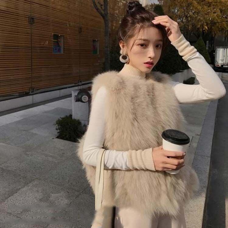 ノースリーブ ファージャケット レディース ベスト ふわふわ ショート丈 秋 アウター ファーベスト フェイクファー ジレ 羽織り ノーカラー 冬 もこもこ 厚手 レイヤード コーデ きれいめ 大人 #gurug577152 | オキナ商店