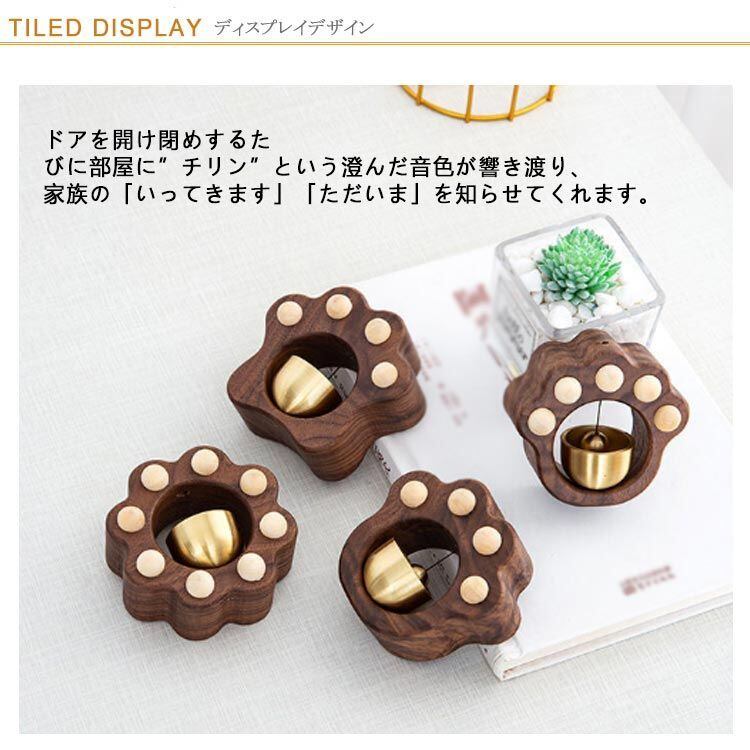 ドア ドアチャイム 結婚祝い おしゃれ 店舗 呼び鈴 やさしい音色 扉 ドアベル 引き戸 ドアベル 開き戸 引っ越し祝い 天然木 マグネット 木製 鈴 肉球 可愛い 猫 ねこ インテリア 贈り物 プ#dzdx6501 | オキナ商店