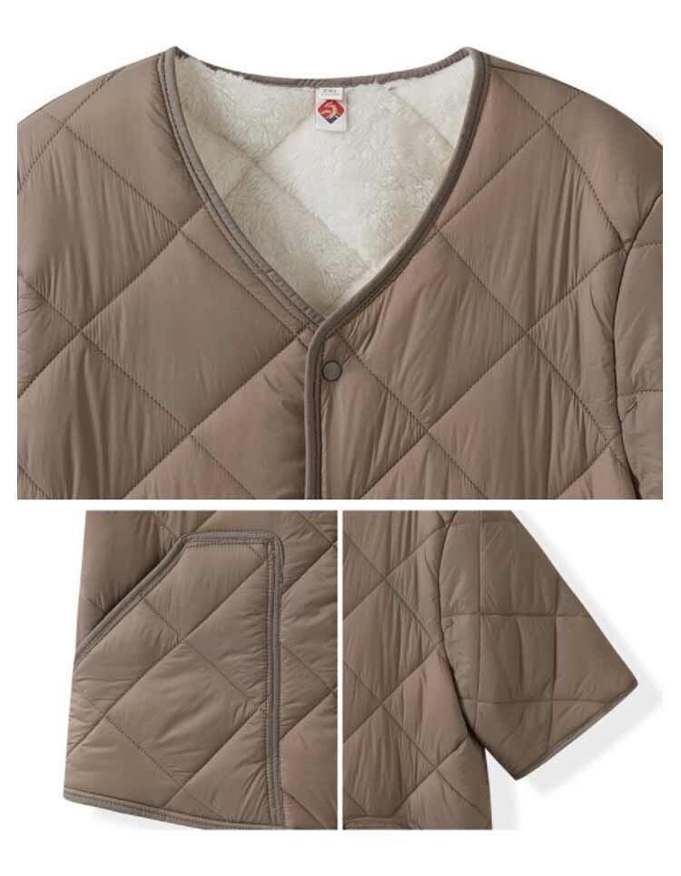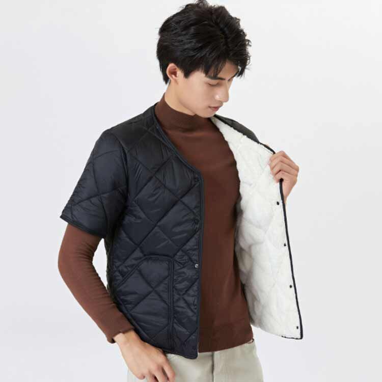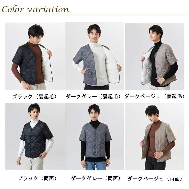 シンプル 中綿ジャケット 50代 寒さ対策 軽量 裏起毛 ダウン風ジャケット メンズ 半袖ジャケット ポケット付き Vネック 保温 暖かい あったか 無地 カーディガン インナー 中綿ベスト 仕事 #dzdx6481 | オキナ商店