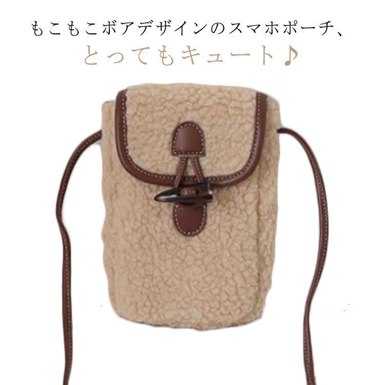 もこもこボアデザインのスマホポーチ、とってもキュート♪