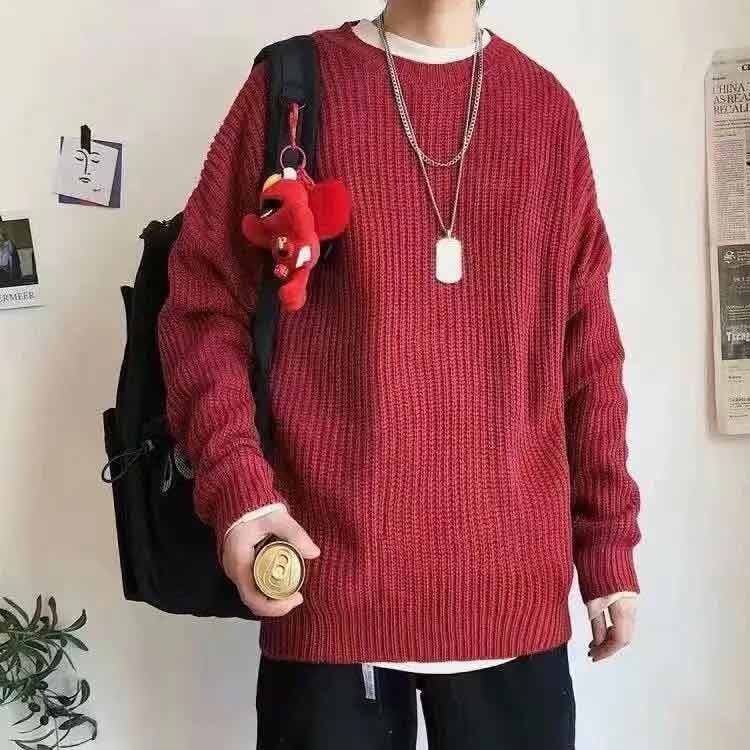 クルーネック?セーター メンズ 長袖 秋冬 ニットセーター ゆったり 厚手 韓国ファッション おしゃれ トップス オーバーサイズ ドルマンスリーブ 無地 お兄系 暖かい カジュアル シンプル #qxz936 | オキナ商店