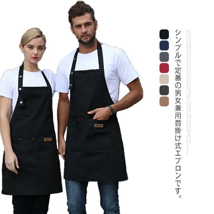 エプロン おしゃれ 北欧風 カフェエプロン ロング丈 ポケット付き 保育士 レディース メンズ 無地 首掛け式 男女兼用 レストラン 美容師 エステ 飲食業 母の日 プレゼント ギフト 送料無料 #qxz519 | オキナ商店