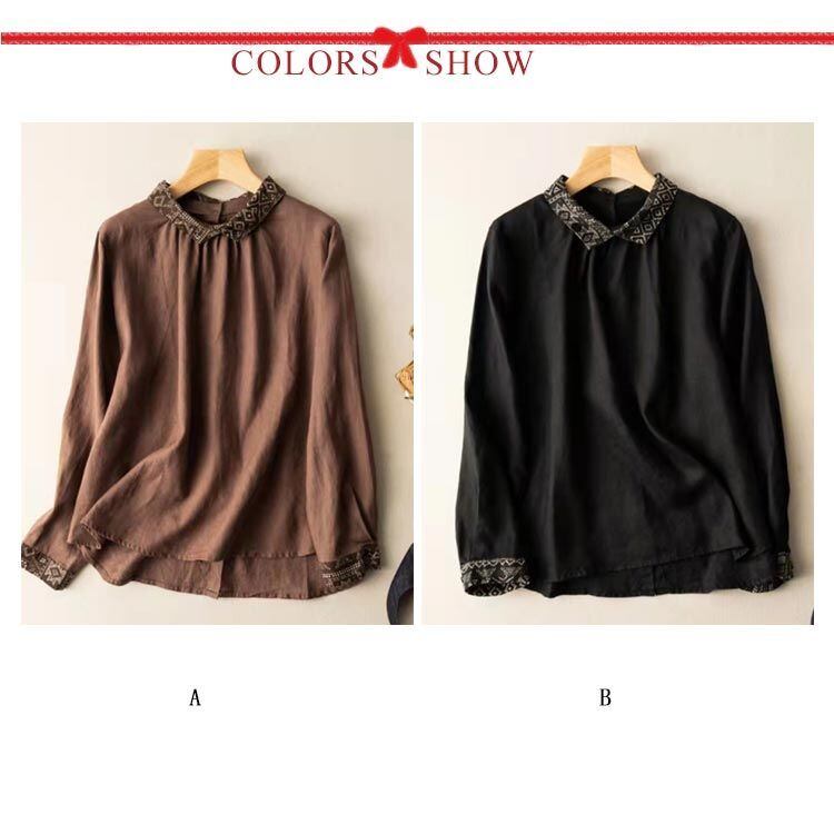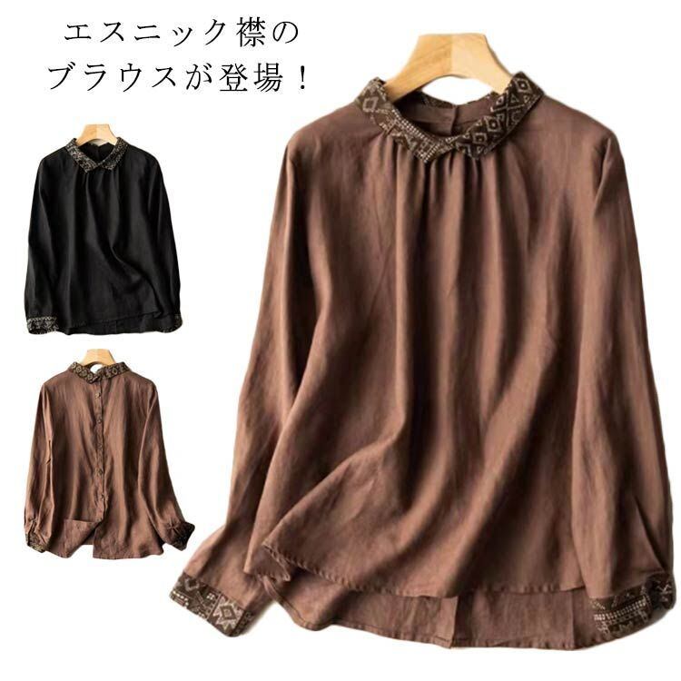 【送料無料】 エスニック リネンブラウス 綿麻混 レディース シャツ 綿麻 トップス リネン シャツ 長袖 ブラウス ナチュラル エスニック 着痩せ ゆったり 体型カバー カジュアル 可愛い 春 夏 #wxn06264 | オキナ商店