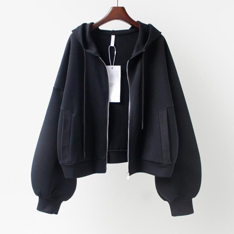 ジップアップパーカー Vネック 長袖 レディース トップス カットソー トレーナー シンプル ゆったり 無地 オルチャン 大きいサイズ 体型カバー カジュアル 春 秋 冬#wxn06079 | オキナ商店