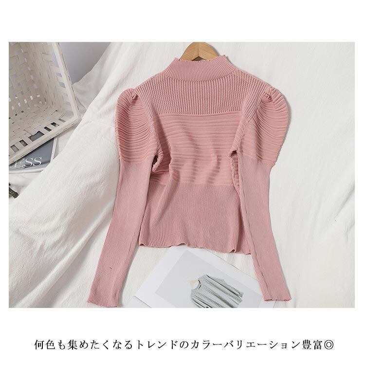 タートルネックニット パフスリーブニット レディース パフスリーブ 長袖 セーター カラー シンプル 着まわし カットソー トップス ゆったり 春秋 春服 秋冬 秋服#wxn05835 | オキナ商店