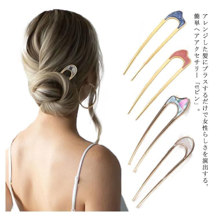 アレンジした髪にプラスするだけで女性らしさを演出する、簡単ヘアアクセサリー「Uピン」。