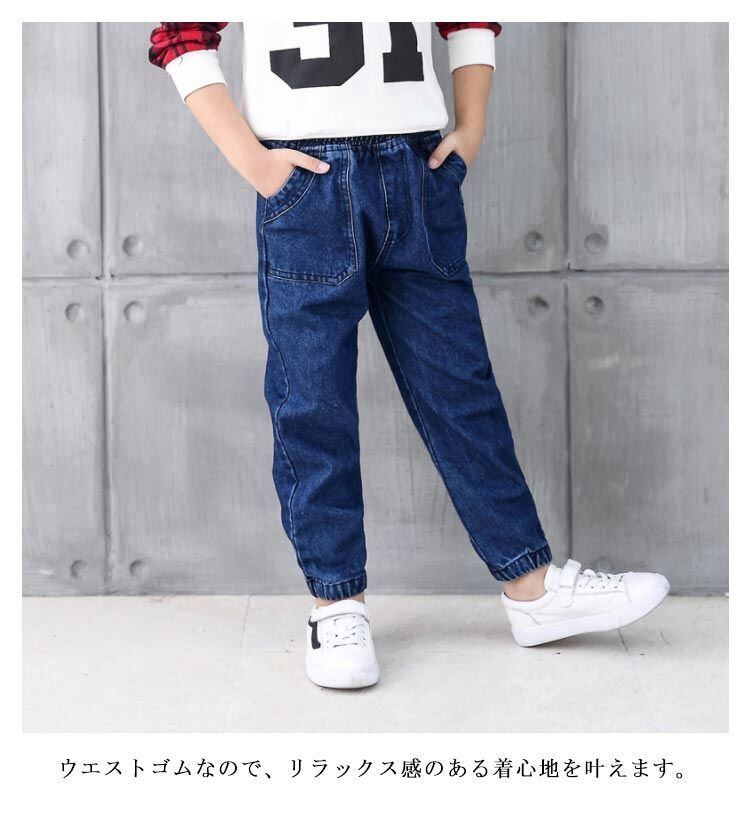 デニムパンツ キッズ ジョガーパンツ 子供服 男の子 女の子 ジーンズ ボーイズ ガールズ 春 夏 秋 冬 長ズボン ズボン ジョガー ロングパンツ ボトムス ストレッチ ウエストゴム 無地 シンプル#song383 | オキナ商店