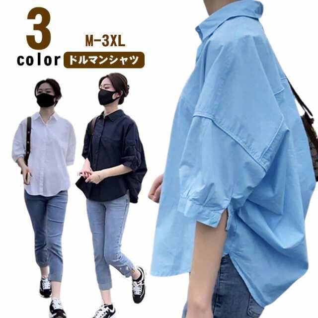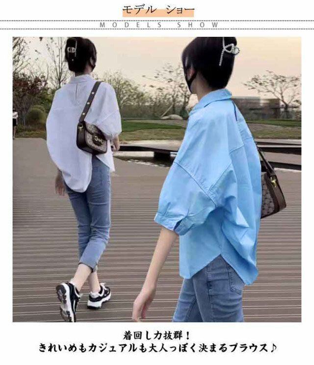 ブラウス シャツ レディース ドルマン 半袖 シャツブラウス 夏 大人 きれいめ 抜け感 トレンド 二の腕カバー 体型カバー 着痩せ オフィス シンプル カジュアル 5分袖 トップス 20代 30代 #pop570 | オキナ商店