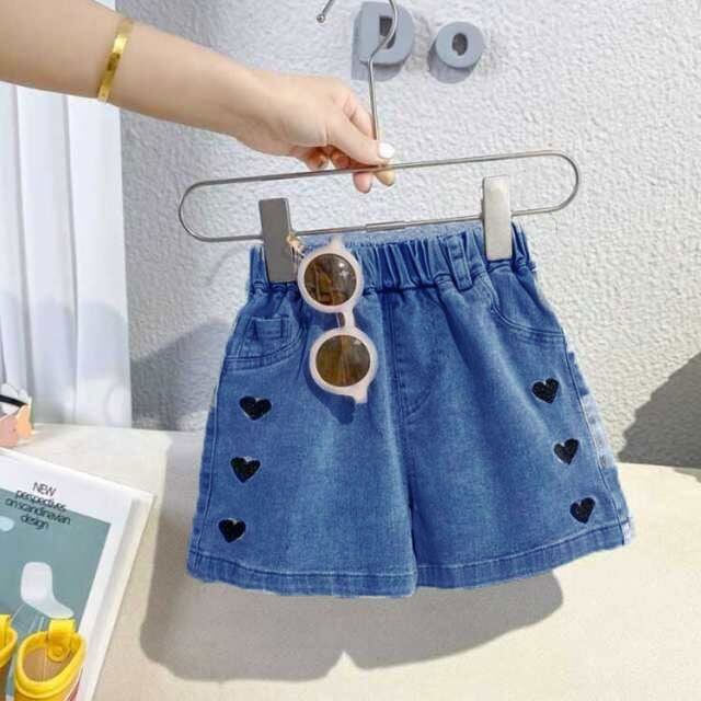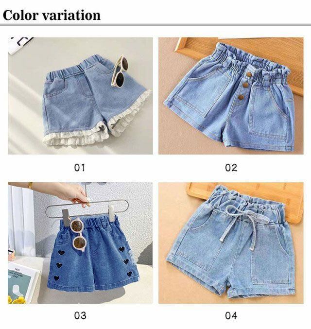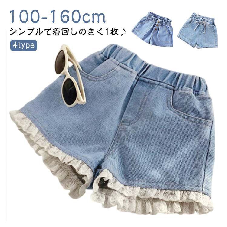 ショートパンツ デニム 子供服 キッズ 女の子 デニムパンツ ボトムス ハーフパンツ ガールズ 女児 フリル レース ジーンズ デニム パンツ 夏 夏服 カジュアル 可愛い ポケット 短パン 100 #pop552 | オキナ商店