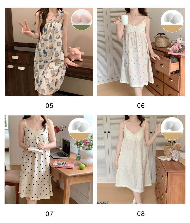 カップ付き ルームウェア 夏 ワンピース キャミソール パジャマ ノースリーブ レディース 可愛い 膝下 ロング カップが取出せる ひざ下丈 大人かわいい ランジェリー 部屋着 ナイトウェア 寝巻き #pop549 | オキナ商店