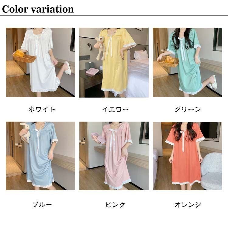 ルームウェア ワンピース レディース 夏 ロング 半袖 パジャマ 部屋着 体型カバー かわいい 大きいサイズ 膝下 シンプル ネグリジェ ミモレ丈 寝巻 寝間着 春夏 ランジェリー 大人可愛い ゆった#pop547 | オキナ商店