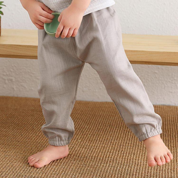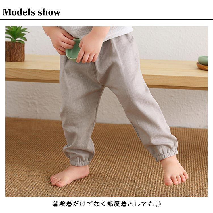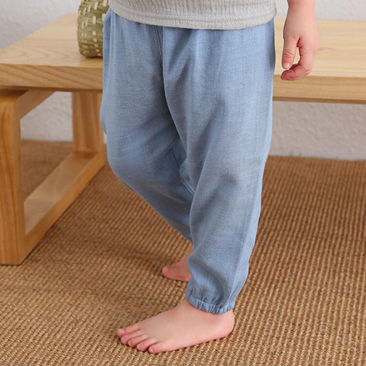 2枚セット 綿麻 パンツ キッズ 男の子 女の子 ベビー 子供 リネン 虫よけ ロングパンツ 春夏 薄手 長ズボン ウエストゴム 蚊よけパンツ ルームウェア サルエルパンツ 部屋着 無地 赤ちゃん 保#pop531 | オキナ商店